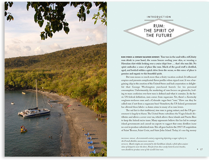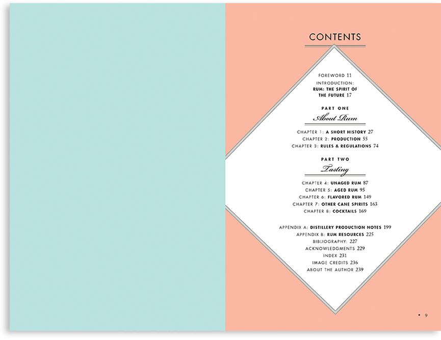 Yo-ho-ho. BTD’s readable typography well-paced visuals help Fred take the reader/drinker on a tour through the history of rum and its manufacture—along with a detailed rating of every rum imaginable. Cheers!