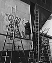 The book includes portraits of Webb’s celebrated friends (Alfred Stieglitz, Berenice Abbott, Harry Callahan, Helen Leavitt and Gordon Parks, to name a few) as well as evocative and poetic essays by Sean Corcoran and Daniel Okrent. Webb's photos honor a range of neighborhoods and neighbors. Most thrilling, though, are his shots of media before it was social: Welcome Home signs, cacaphonies of type on walls and marquees, a scribbled succinct death notice stating business will go on, and a billboard painter at work in Times Square.