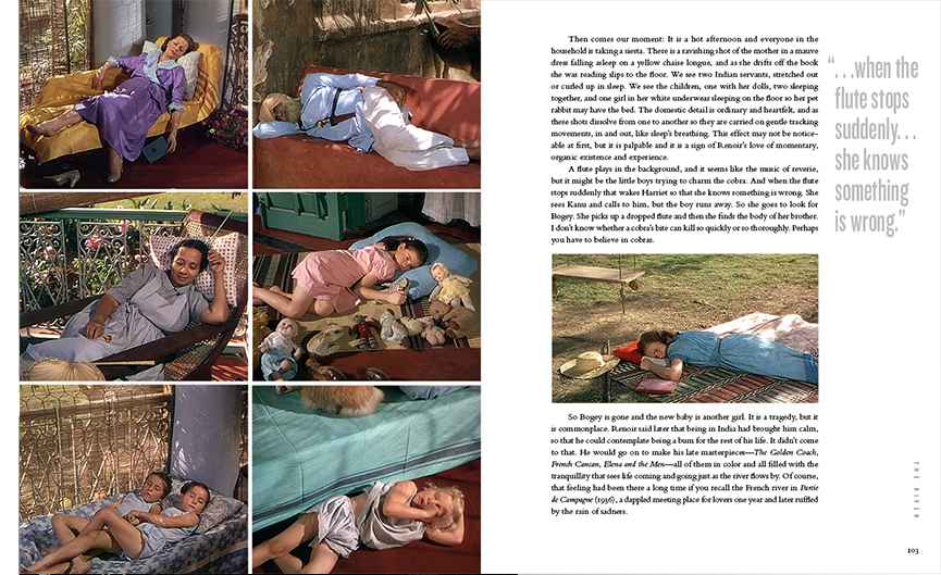 From this rich collection, our "Designer's Choices" are: 1. Thomson's essay on "The Letter," especially his meticulous description of the film titles and 2. The images from Jean Renoir's "The River," with frames showing how Renoir had his father's eye for color and composition.